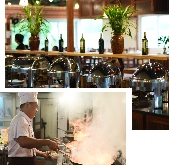 Cúc Phương được thiên nhiên ưu đãi với nhiều cảnh sắc tuyệt đẹp, giúp du khách tận hưởng cảm giác hòa mình cùng đất trời. Đội ngũ đầu bếp và nhân viên nhà hàng của chúng tôi luôn nỗ lực để giúp du khách thưởng thức trọn vẹn vẻ đẹp của thiên nhiên, thông qua các món ăn thơm ngon và tinh tế. Ẩm thực cũng là niềm tự hào của chúng tôi, sẵn sàng đáp ứng mọi yêu cầu của thực khách tùy theo sự kiện, độ tuổi, theo mùa và các yêu cầu đặc biệt khác.